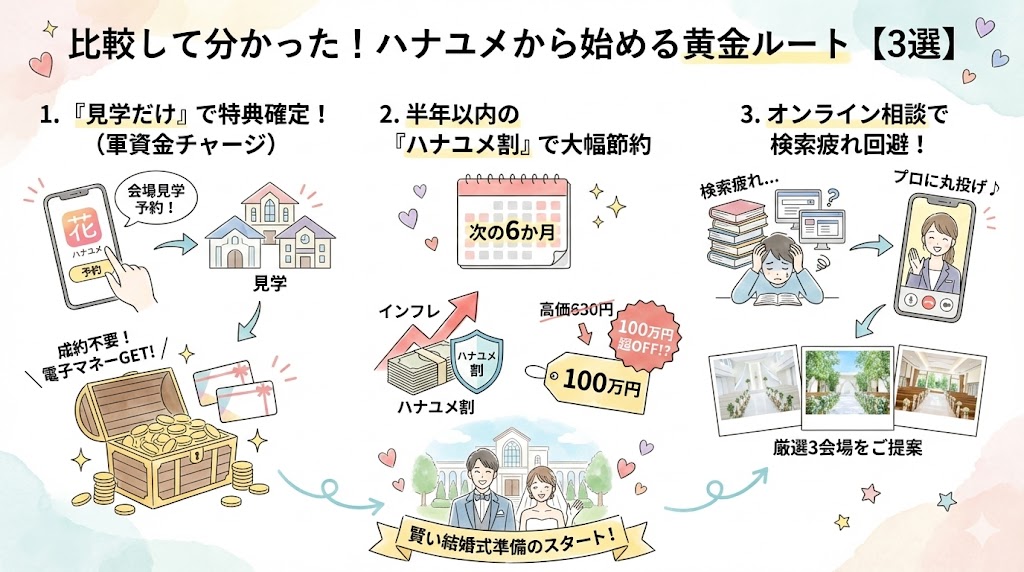【まとめ】2026年の賢い式場探しは「ハナユメ」からスタート!