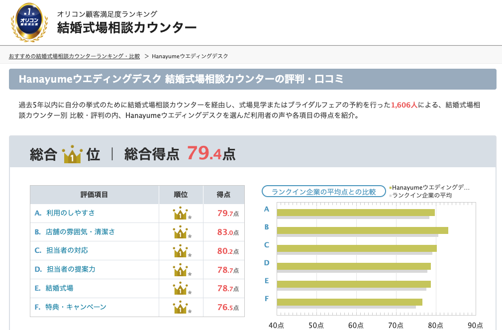 しかし、上記のようにハナユメの相談カウンターに関する評判・口コミでは常にオリコン顧客満足度ランキングで上位にランクインしています。