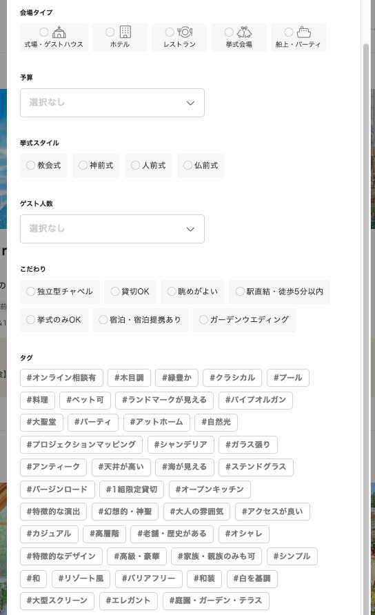 細かく条件を絞り込まないと理想の式場に辿り着けず、初心者には少し複雑な迷路のように感じられる場合があります。
