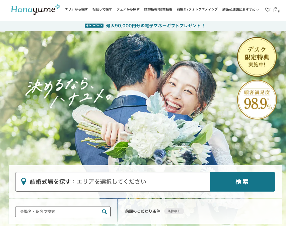 ① 「成約不要・式場見学だけ」で特典獲得!ハナユメを最初に持ってくる理由
